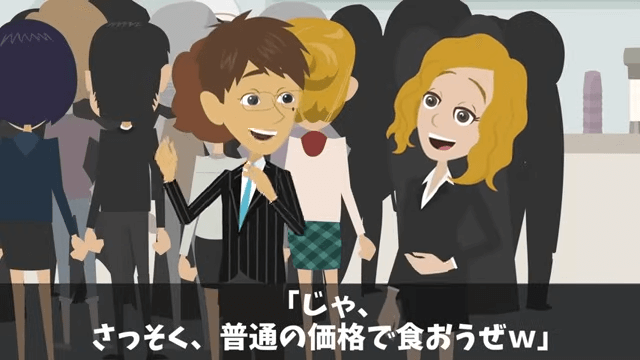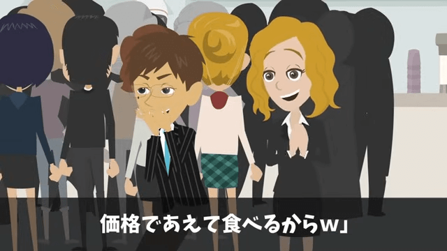 同僚たちに発言を聞かれてしまった主人公は周囲を確認すべきだったと後悔します。 すると同僚は「貧乏人の高卒ババアは半額セールを堪能してね」と主人公に言いました。