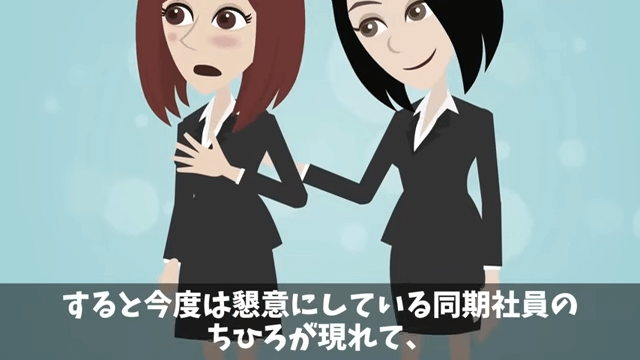 今回は『食事会で…私の正体を知らない同期「予約の人数に入ってないから帰れ(笑)」直後⇒周囲が青ざめたワケ』を紹介します。 同僚は副社長に励ましてもらった主人公に対して、調子に乗らないようにと言いました。 さらにもう1人の同僚も「俺たちを悪く言いやがって!」と怒っていて…。