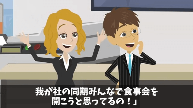 同僚に出くわした主人公は思わず身構えましたが、同僚たちはなぜか笑顔でした。 そして同僚は、自分たちが幹事になって同期の食事会を開くつもりだと話したのです。