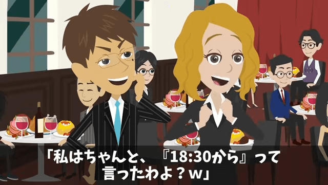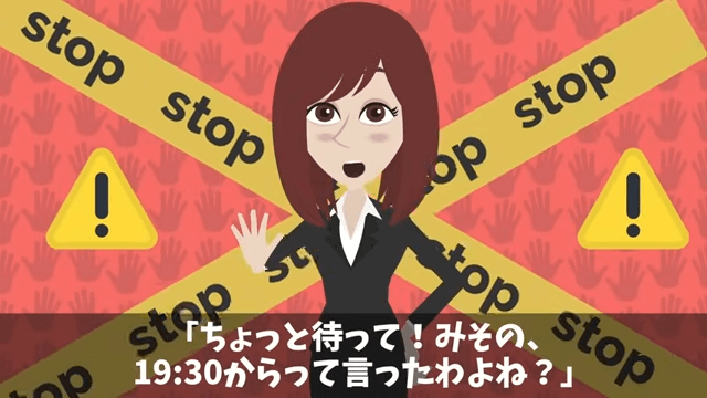 同僚たちから遅刻だと言われた主人公は「19時半からって言ったわよね?」と尋ねました。 すると同僚たちは顔を見合わせて笑い始めて…。