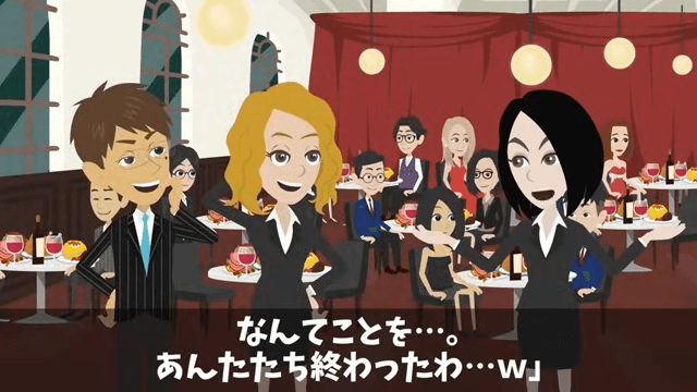 今回は『食事会で…私の正体を知らない同期「予約の人数に入ってないから帰れ(笑)」直後⇒周囲が青ざめたワケ』を紹介します。 主人公に連絡して事情を知った友人は青ざめ、それを見た同僚たちはニヤニヤしていました。 そして同僚は「高卒ババアが全部悪いんだよ!」と言い出し…。