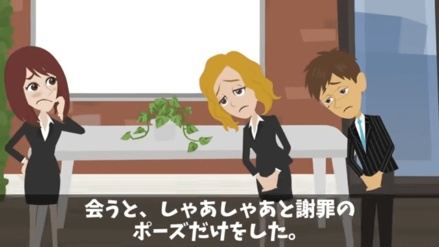 同僚たちはまったく反省しておらず、むしろ主人公に対して逆恨みをしていました。 そのため、同僚たちは主人公に格好だけの謝罪をしたのです。