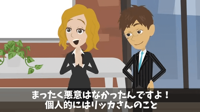 今回は『食事会で…私の正体を知らない同期「予約の人数に入ってないから帰れ(笑)」直後⇒周囲が青ざめたワケ』を紹介します。 同僚たちは主人公を逆恨みしていましたが、本心を隠して謝罪することにしました。 そして同僚たちは、主人公に頭を下げると…。