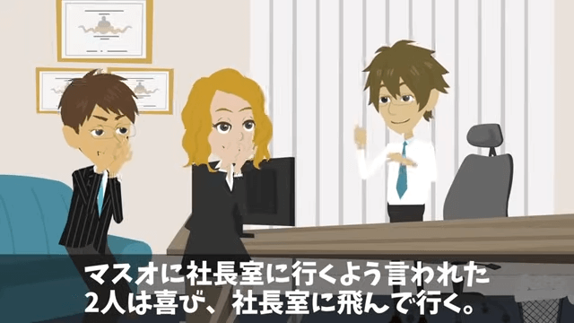 副社長は、社長が希望通りの人事をしたいと言っていることを同僚たちに伝えました。 すると同僚は「ご期待に応えられるよう、尽力いたします!」と言い、社長室に向かったのです。