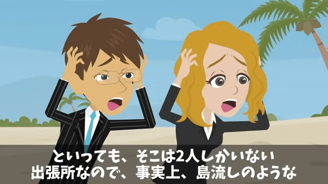 同僚たちは小さな島国の出張所の所長と副所長になるよう命じられました。 しかしそこには同僚たち2人しかいないため、事実上の島流しのようなもので…。