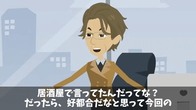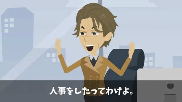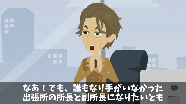社長は、本来なら主人公に嫌がらせをしていた同僚たちはクビだと言いました。 しかし同僚たちが出張所の所長と副所長になりたいと言っていたため、今回の人事をしたと説明したのです。