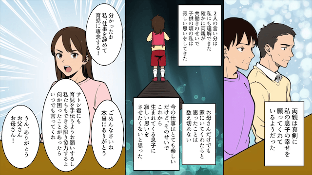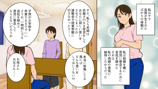 今回は『両親の前で嘘をつく夫「育児は全部俺がやっていて~」私「は?」』を紹介します。 主人公は結婚を機に、子育てに専念するために仕事を辞めました。 主人公がこのような決断をしたのは、両親の意見に納得したからで…。