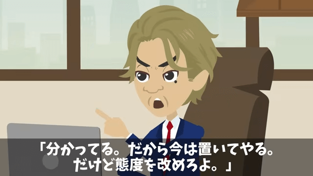 今回は『新社長が無視してくるので…俺「辞めますね」社長「作戦成功!」しかし後日⇒会長「なぜ彼を辞めさせたんだ!?」』を紹介します。 社長は主人公を社長室に呼び出し「これからは俺の指示に従え」と言いました。 さらに「本音を言えば辞めてほしいが、面倒だからとりあえず置いてやる」と主人公に言い…。