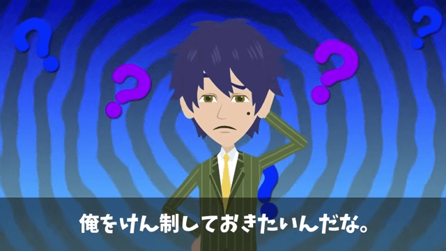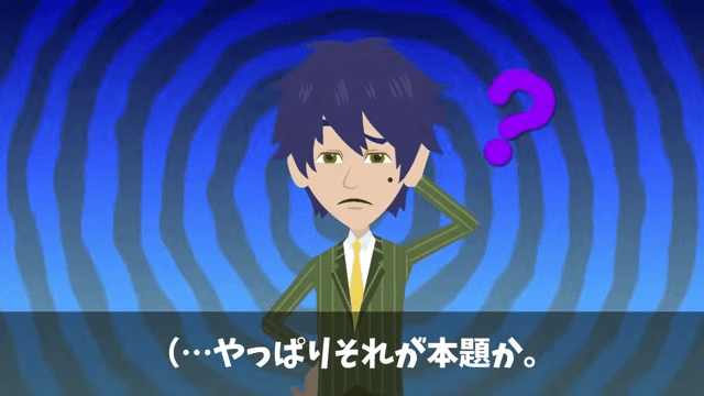 社長は会長に告げ口しないようにと主人公に釘を刺しました。 それを聞いた主人公は「やっぱりそれが本題か」と思って…。