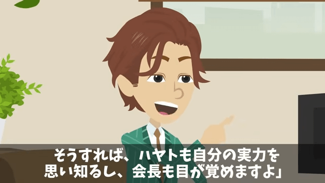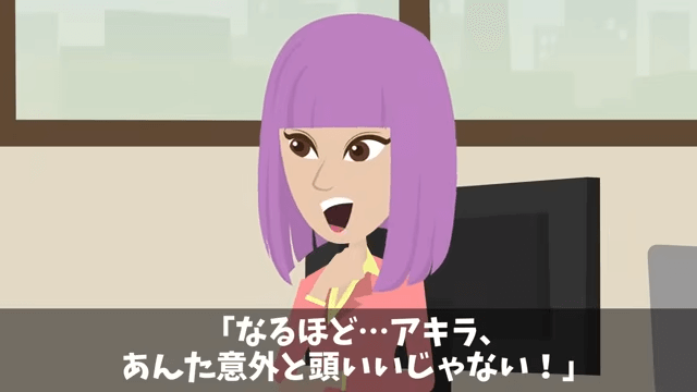 男性社員は、あえて主人公にプロジェクトを任せて失敗させればいいと話します。 それを聞いた女性社員は「あんた意外と頭いいじゃない!」と感心しました。