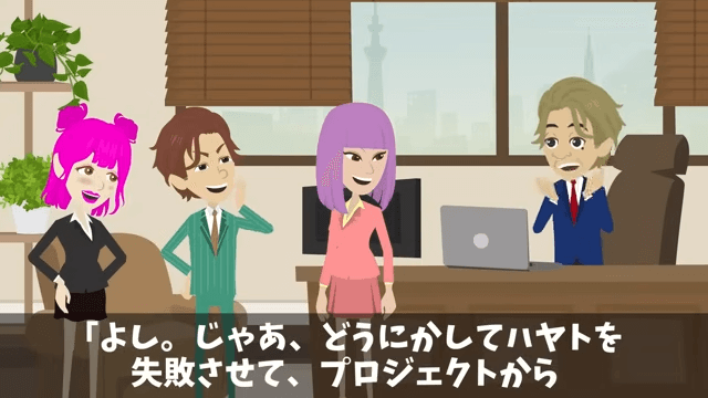 今回は『新社長が無視してくるので…俺「辞めますね」社長「作戦成功!」しかし後日⇒会長「なぜ彼を辞めさせたんだ!?」』を紹介します。 男性社員は主人公にプロジェクトを任せて失敗させればいいと提案しました。 それを聞いた女性社員は、感心した様子で「あんた意外と頭いいじゃない!」と言い…。
