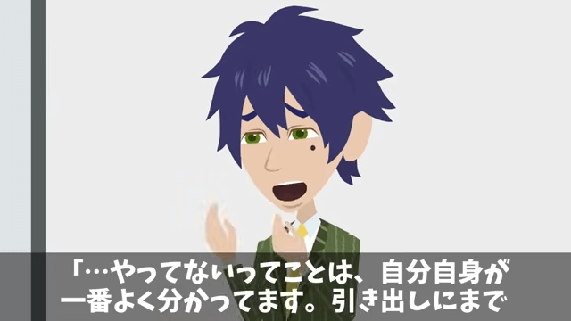 女性社員は、主人公が自分で資料を破ったのだと決めつけてきました。 しかし主人公は資料をきちんと引き出しにしまっていたため、誰かの悪意で破られたとしか思えず…。