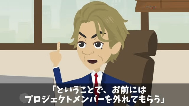 主人公はさまざまな嫌がらせを受けつつも、どうにか乗り越えてきました。 しかし結局、社長にプロジェクトのメンバーから外されてしまい…。