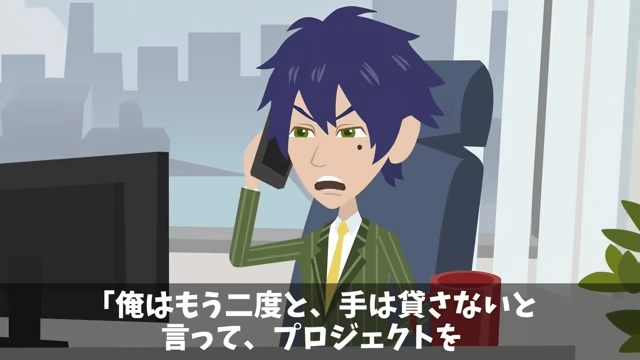 今回は『新社長が無視してくるので…俺「辞めますね」社長「作戦成功!」しかし後日⇒会長「なぜ彼を辞めさせたんだ!?」』を紹介します。 主人公に電話をかけ、倒産の危機を救うために戻ってきてほしいと頼み込む社長。 そんな社長の横では、男性社員と女性社員がどうしようもない状況に焦っていて…。