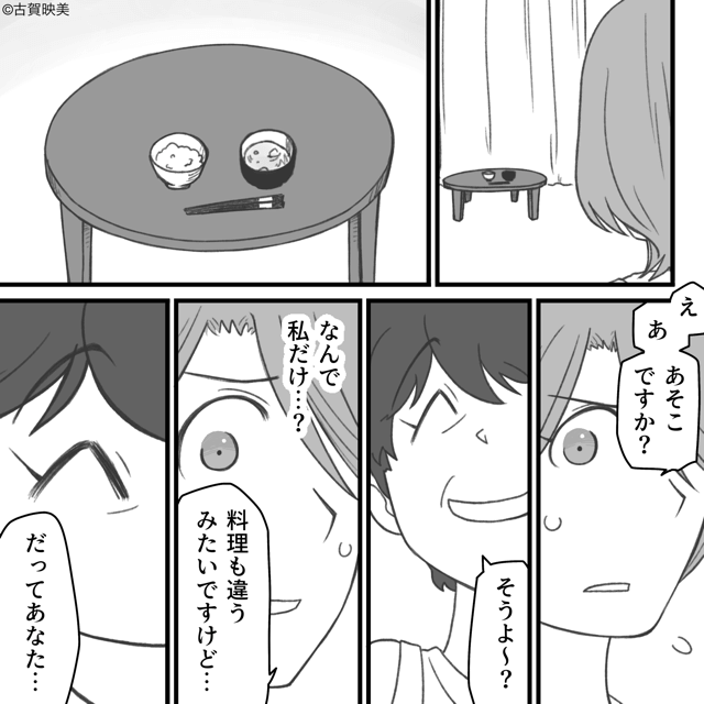 今回は『義実家、全員敵。』を紹介します。 食卓に主人公の席がなかったため「私はどこに座れば…」と義母に尋ねた主人公。 すると義母は「あなたの席はあっちよ」と指を差し…。