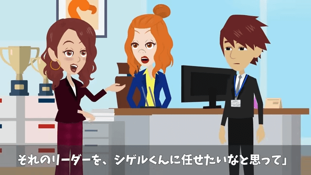 社長は今度の会議のリーダーを主人公に任せたいと言います。 すると課長が、どうして自分ではなく主人公なのかと社長に尋ねました。