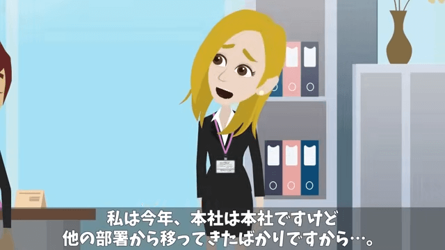 課長は、主人公ではなく同僚がリーダーでもいいのではないかと社長に提案します。 すると同僚は、ほかの部署から移ってきたばかりで基本的な仕事を覚えることで精いっぱいだと言いました。