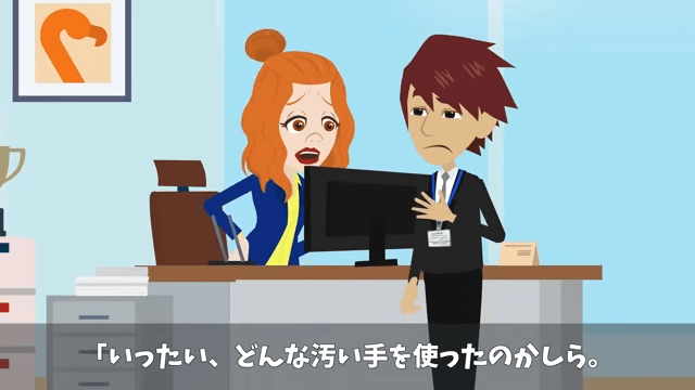 そして社長が去った後、課長は主人公に「あんた、社長にも気に入られてるわけ」「いったい、どんな汚い手を使ったのかしら」と言い…。