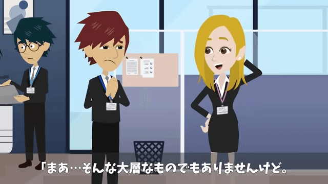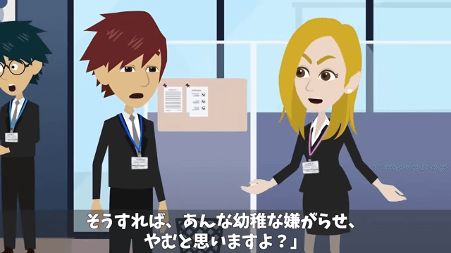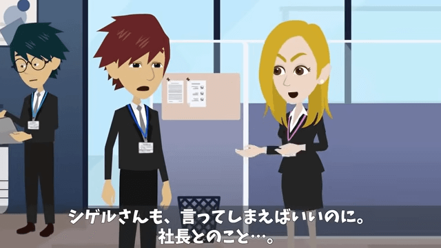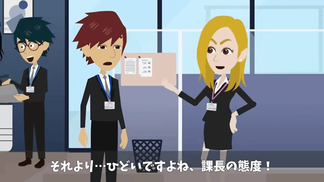 主人公は課長と引き離してくれた同僚にお礼を言いました。 すると同僚は、社長とのことを課長に伝えれば、嫌がらせもなくなるはずだと主人公に言い…。