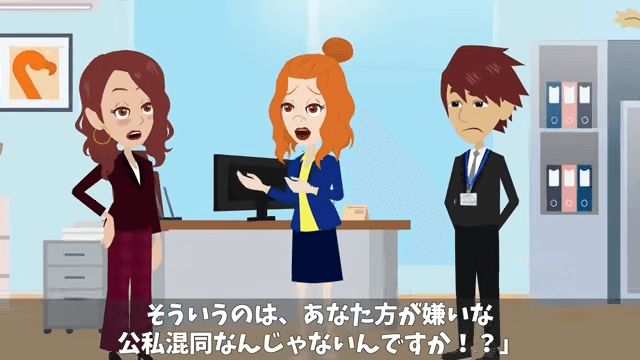 課長は社長が自分に厳しいことを言うのは、主人公が社長の夫だからではないかと言います。 さらに課長は「そういうのは、あなた方が嫌いな公私混同なんじゃないんですか!」と言いました。