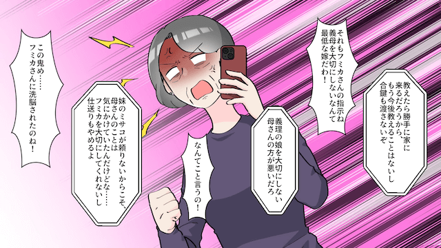 その後、夫に叱られた義母は「彼女の指示ね!義母を大切にしないなんて最低な嫁だわ!」と言い…。