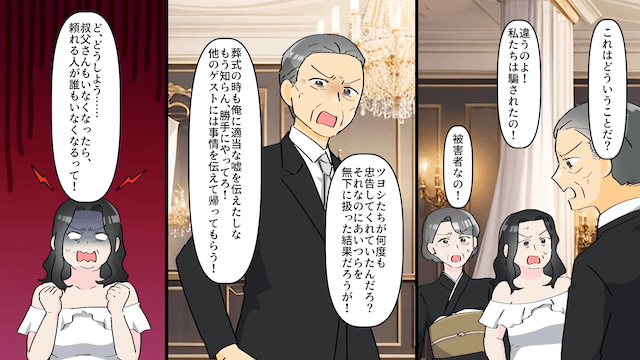 今回は『義母「娘の式には招待しない(笑)」私「はーい」当日、黙って家族で沖縄旅行した結果』を紹介します。 違和感に気づいた夫の叔父は、義母と義妹に「なにか問題でも起きているのか?」と尋ねました。 しかし義母と義妹がはぐらかすため、夫の叔父は主人公夫婦に事情を聞くことにして…。
