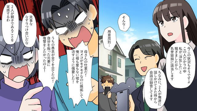 主人公の友人でもある社長が経営している会社は夫の取引先で、夫の非常識な行動に呆れた社長は契約解除を突きつけました。 そして主人公も、悪評を流した2人を名誉毀損で訴えると告げたのです。