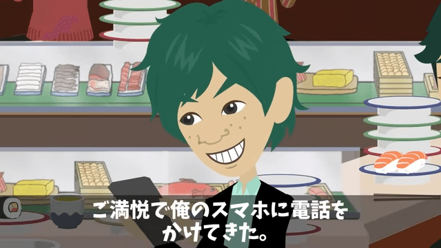 後日、同級生は自分を含めて10人で店にやってきました。 そして、たくさん寿司を食べた同級生は、主人公のスマホに電話をかけたのです。