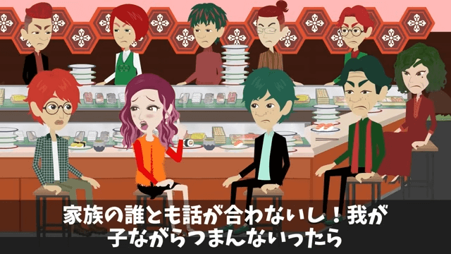 今回は『元同級生の大家族が俺の寿司屋で食い散らかした話』を紹介します。 同級生たちが主人公のことを悪く言っていると、同級生の息子は主人公に申し訳ないと言い出しました。 すると、残りの家族が同級生の息子をにらみつけて…。