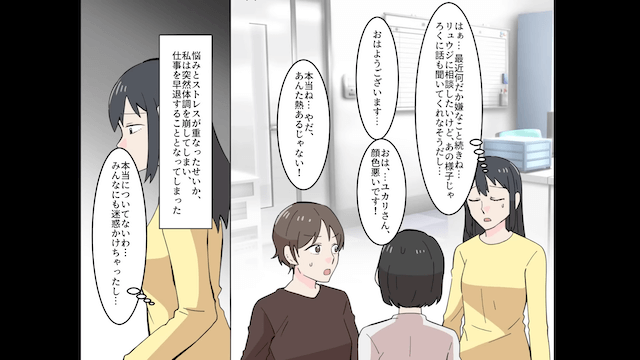 夫と2人で幸せに暮らしていた主人公ですが、あるときから夫の態度に違和感を抱くようになり…。 ある日、主人公が体調を崩して会社を早退すると、夫と浮気相手が家にいたのでした。
