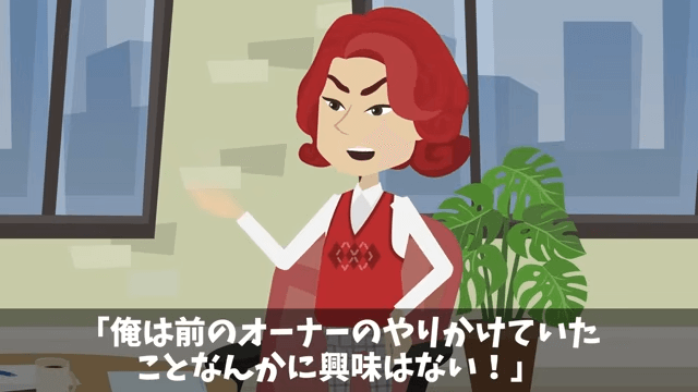 今回は『ジム開店前日…オーナー「注文したマシン全部キャンセルで(笑)」というので“全店で回収した”結果』を紹介します。 オーナーは前オーナーが主人公にだけ経営理念を話していたことに腹を立て「俺はもう帰る!」と言って立ち上がりました。 主人公が戸惑いながら「商談はもうよろしいのでしょうか?」と確認すると、オーナーは「構わん」と言って去っていき…。