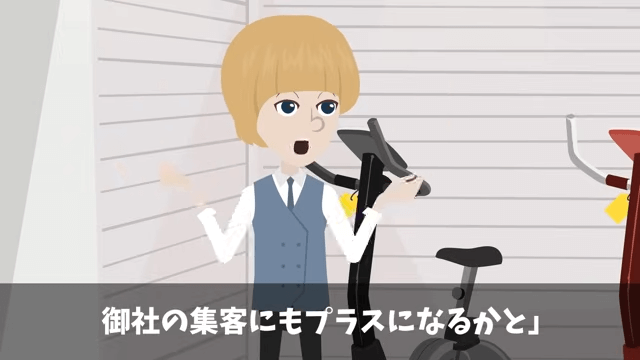 今回は『ジム開店前日…オーナー「注文したマシン全部キャンセルで(笑)」というので“全店で回収した”結果』を紹介します。 主人公は最新のトレーニングマシンをオーナーに紹介しました。 そして主人公は「まだ御社にしか話をしていないものです」と話し始めて…。
