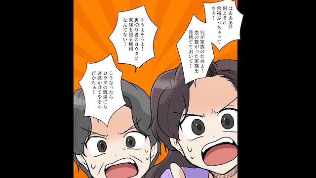 主人公たちの罠にかかった義母と義妹が逆ギレすると、主人公は「いい加減にしなさいよ!?」と一喝したのでした。