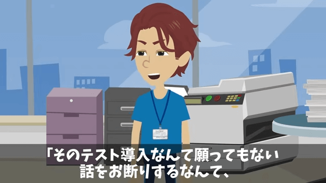 社員は新製品のテスト導入を断ることはありえないと言い切りました。 それを聞いたオーナーは戸惑いながらも「あ、ああ、もちろんだとも」と答えて…。