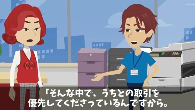 社員は主人公が優先的に取引してくれることはとてもありがたいことだと話します。 しかし社員の話を聞いていたオーナーは「なんていうか…白けてきたな」と思っていて…。