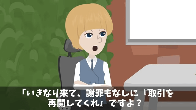 オーナーと社長は取引を再開してもらうため、直接主人公に頼みに行きました。 しかし主人公は「お断りします」と即答したのです。
