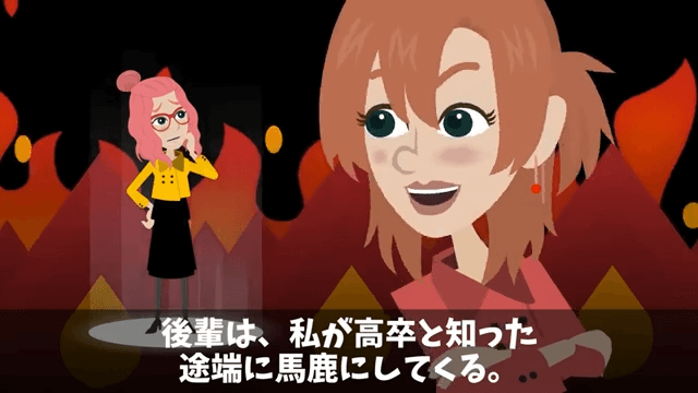 今回は『同僚「お前は仕事できないので案件もらいまーす(笑)」私「はーい」だが後日⇒勘違いしていた同僚「へ?」』を紹介します。 主人公の後輩は、主人公が高卒だと知った途端にバカにしてきました。 そして、主人公に海外の商談の案件が来たことを知った後輩は…。