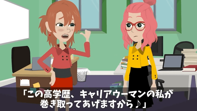 後輩は高学歴の自分が主人公に来た案件を巻き取ると言い出しました。 それを聞いた主人公は、心の中でガッツポーズをします。