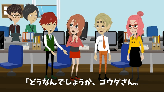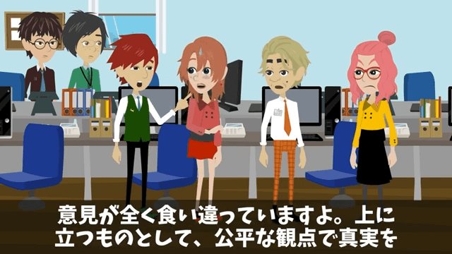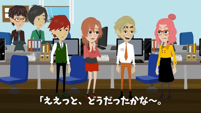 主人公は「ちょっと!話が違いますよ!?」と後輩の話を否定し、後輩が自分からこの案件を持っていったことを上司に伝えました。 そこで上司が男性社員に意見を求めると、男性社員は「ええっと、どうだったかな~」と慌て始めて…。