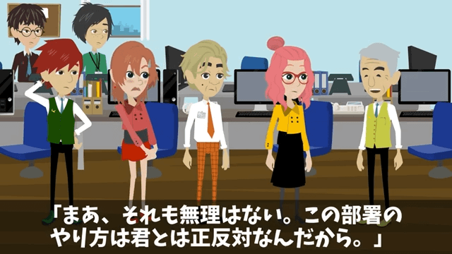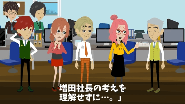 社長は、主人公をこの部署に参加させることで、新しい風が吹き込むと思ったと話します。 それを聞いた主人公は「すみません…社長の考えを理解せずに…」と謝りました。