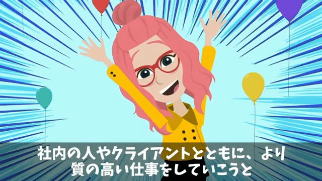 サポートセンターに異動になった後輩と男性社員は、日々お互いを罵り合っているようです。 そして主人公は、これからも丁寧な対応を心がけ、質の高い仕事をしていこうと思うのでした。