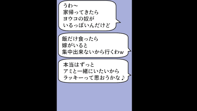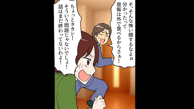 夫の遊び癖が加速したため、主人公が激怒すると、夫は話を逸らして逃げ出しました。 そして夫が落としていったスマホを主人公が確認すると、夫の浮気が発覚したのです。