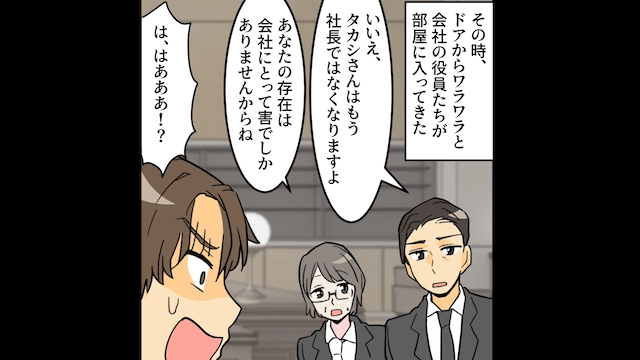 するとそのとき、役員たちがやってきて、夫に「あなたはもう社長ではなくなりますよ」と告げて…。