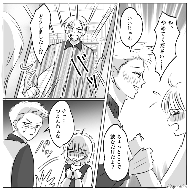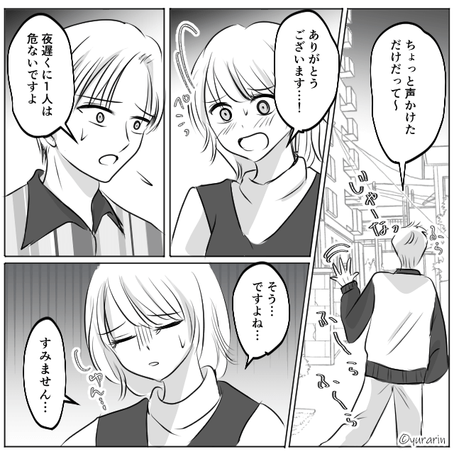 さらに腕までつかまれ主人公が恐怖を感じていると、コンビニの店員が助けてくれたのでした。