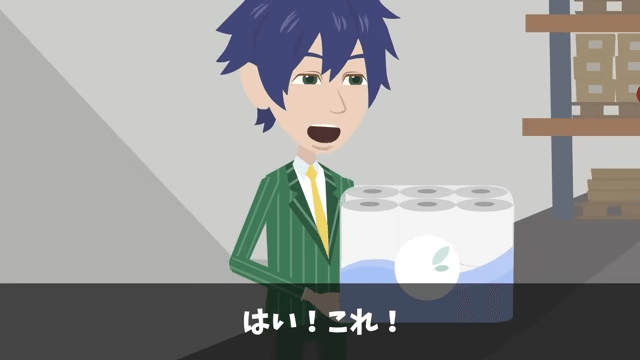 今回は『高級ホテル「ペーパーの納品5億円分キャンセルで!」取引先のオレ「はーい」⇒ライバルホテルに納品した結果』を紹介します。 男性は公園のトイレットペーパーが切れていた上にお金もないため、少しわけてほしいと頼んできました。 それを聞いた女性社員は「すみません」と男性に頭を下げて…。