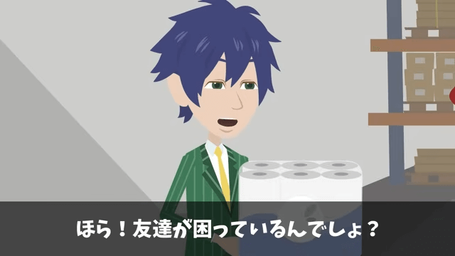 今回は『高級ホテル「ペーパーの納品5億円分キャンセルで!」取引先のオレ「はーい」⇒ライバルホテルに納品した結果』を紹介します。 男性は公園のトイレットペーパーが切れていた上にお金もないため、少しわけてほしいと頼んできました。 それを聞いた女性社員は「すみません」と男性に頭を下げて…。