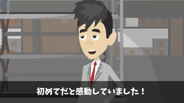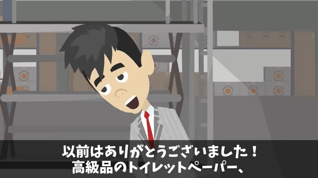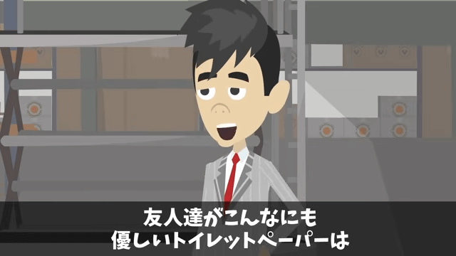 担当者が慌てていたころ、主人公のもとに以前トイレットペーパーを渡した男性がやってきました。 そして男性は友人たちがトイレットペーパーに感動していたことを主人公に伝えたのです。