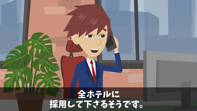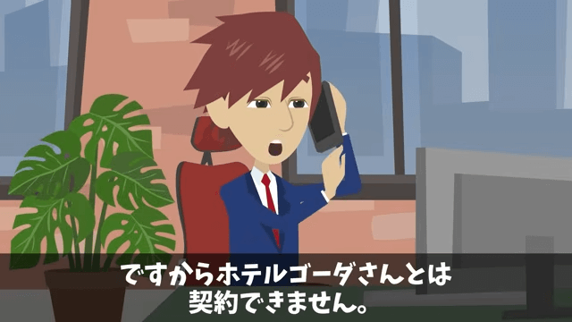 主人公はオーナーのホテルと契約したため、担当者とはもう契約できないと伝えます。 それを聞いた担当者は「我が社のライバル会社じゃないか!」と驚いて…。