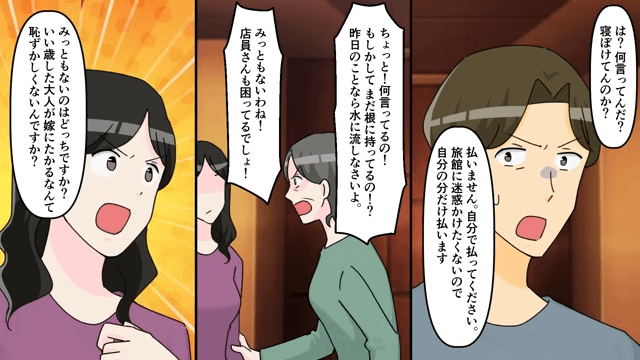 今回は『夫と義家族が旅行先で好き勝手した話』を紹介します。 旅館での食事中、義母は突然泣き始めて主人公を悪者に仕立て上げようとしました。 すると夫が「母さんにここまでさせて!今すぐ謝れ!そしたら許してやるよ!」と主人公に言い…。