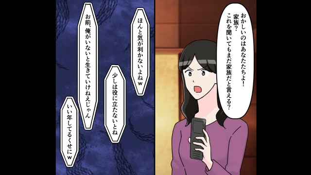 支払いができなくて焦っている夫に、主人公はクレジットカードを解約したことを明かしました。 そして、困惑する夫たちに微笑み「あなたたちが困る顔を見るのがこんなにスカッとするなんて」と言ったのです。